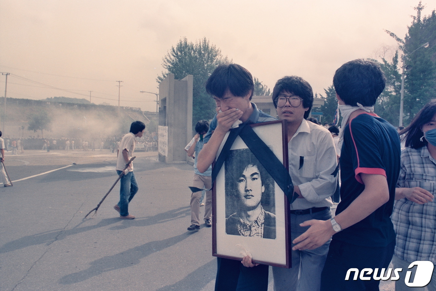 또 다른 사진엔 이한열 열사의 죽음을 애도하는 시위대의 행렬을 전경들이 둘러싼 장면도 포착돼 당시의 삼엄한 분위기를 보여준다.
